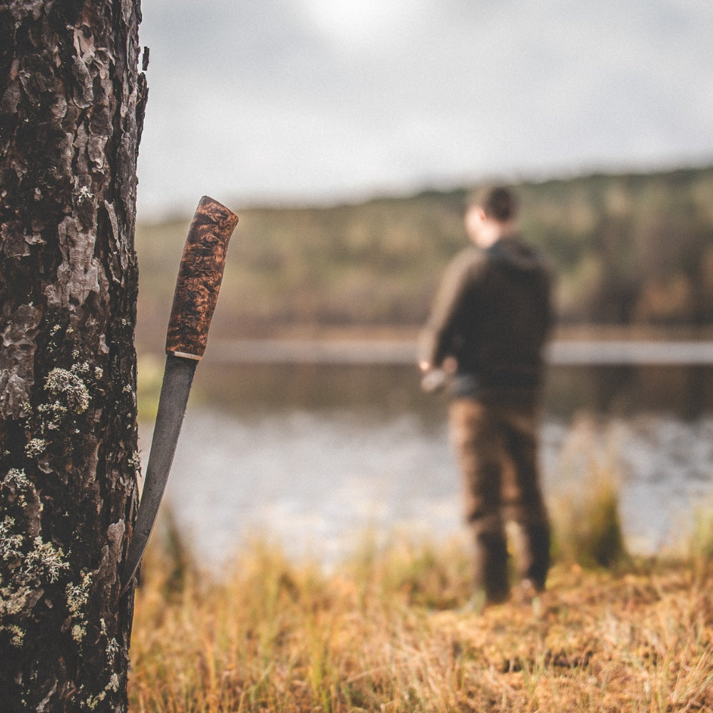 - Griff: Geflammte Maserbirke, mit Leinöl behandelt für sicheren Halt – auch bei Nässe