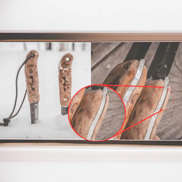 Stabilisiertes Holz ist ein beliebtes Material für Messergriffe, da es langlebig, widerstandsfähig und optisch ansprechend ist. Der Stabilisierungsprozess besteht darin, das Holz mit Harz zu tränken, wodurch die Poren gefüllt werden und das Holz stabiler sowie unempfindlicher gegenüber Temperaturschwankungen und Feuchtigkeit wird.