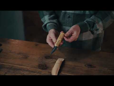 The blade is made from forged carbon steel and the handle is curly birch, coated with linseed oil which ensure a firm grip, even when wet. Comes with a handcrafted sheath of light vegetable tanned Finnish leather.