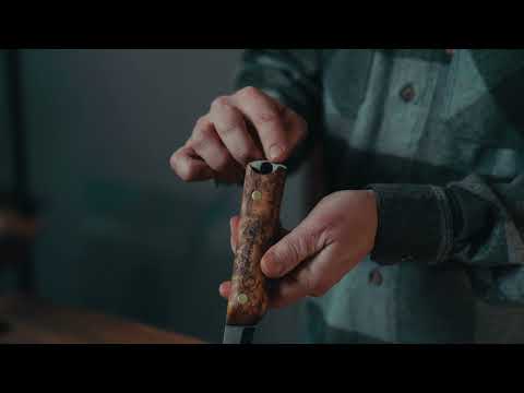 Our products are made from the finest natural materials and raw materials that follow the highest ethical standards. High-quality carbon steel, Finnish curly birch and Finnish natural tanned leather form the basis of all our products. Our locally produced, organic and ethical leather comes from free animals and has been vegetable tanned where only organic material is used instead of destructive chemicals.